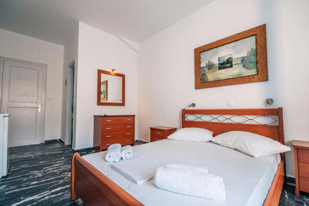 Απλά δίκλινα δωμάτια με διπλό κρεβάτι ή μονά κρεβάτια με ψυγείο και βραστήρα για την παρασκευή καφέ και ροφημάτων. Επιπλέον έχουν και κάποια σκεύη για σερβίρισμα πρόχειρων φαγητών. Διαθέτουν μπαλκόνι με θέα στα καταγάλανα νερά των Καμαρών όπου μπορείτε να χαλαρώσετε μετά από μία μέρα εξερεύνησης στο νησί ή να απολαύσετε το πρωινό σας καφεδάκι.